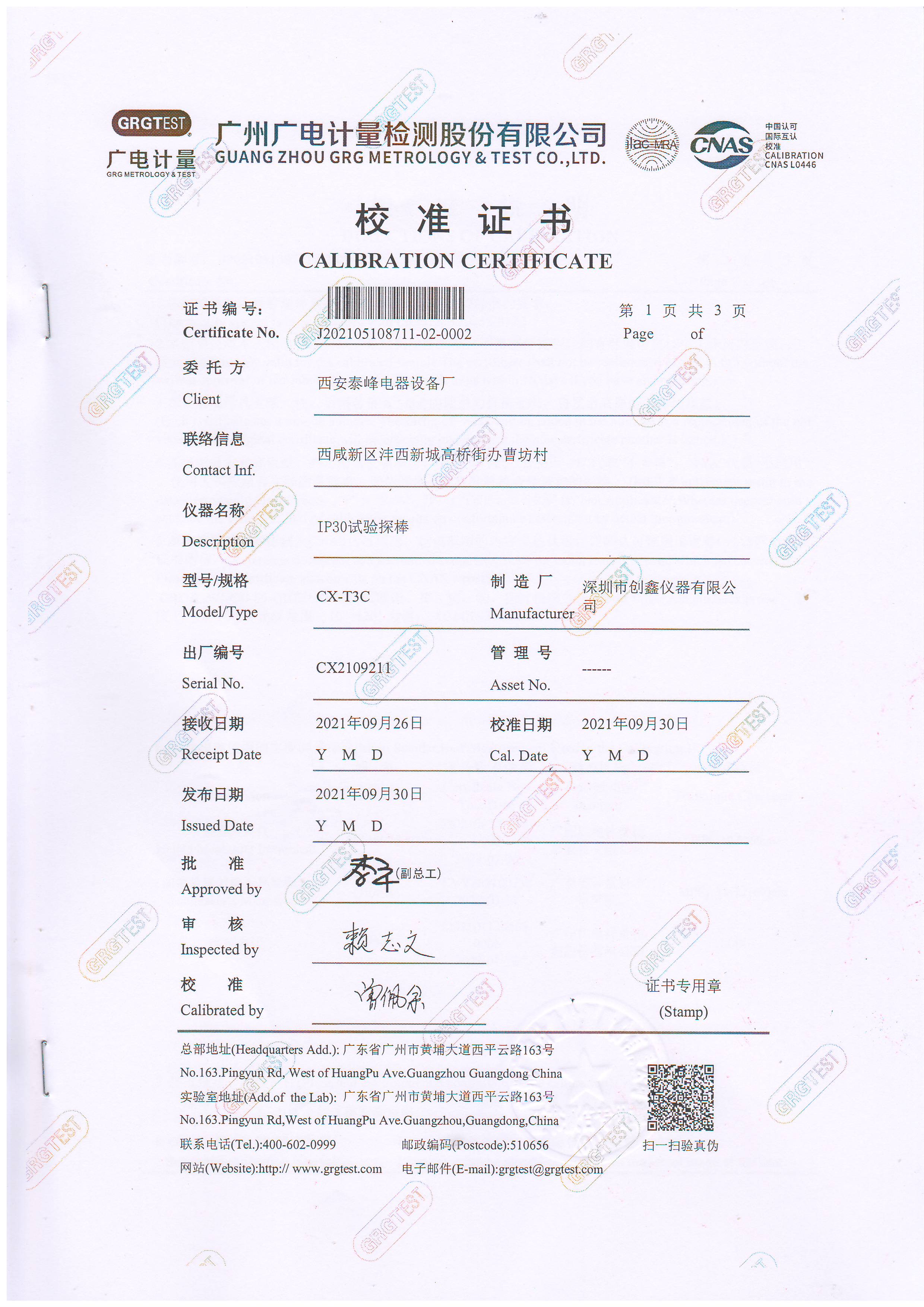 符合IEC61032圖2試具C、IEC60529IP3、GB4208IP3、GB/T16842試具C、GB8898、IEC60065、IEC60598、GB7000等標準要求。用于防止手持工具觸及的防護檢驗。