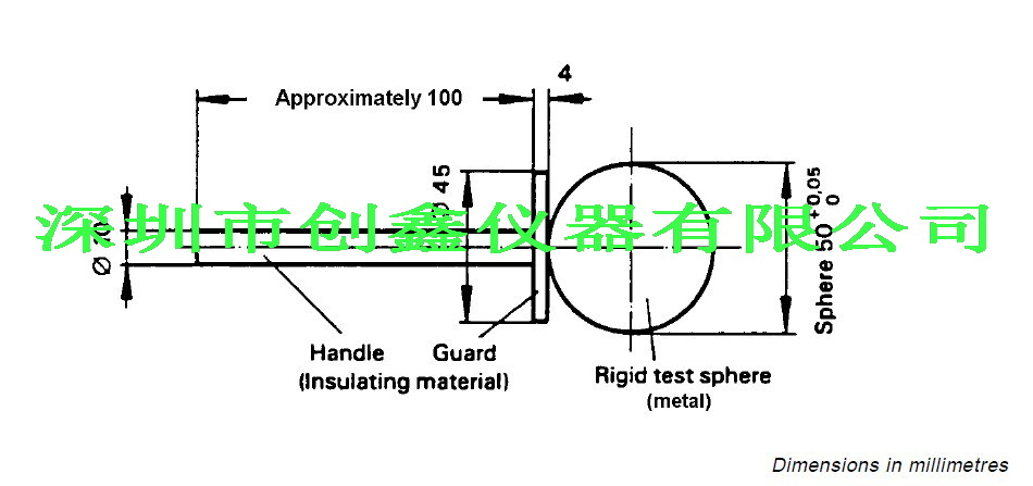 符合IEC61032圖2試具C、IEC60529IP3、GB4208IP3、GB/T16842試具C、GB8898、IEC60065、IEC60598、GB7000等標準要求。用于防止手持工具觸及的防護檢驗。