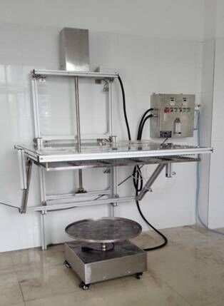 試樣放置:按試樣正常工作位置擺放在以1r/min的旋轉(zhuǎn)樣品臺(tái)上,樣品頂部至滴水口的距離不大于200mm