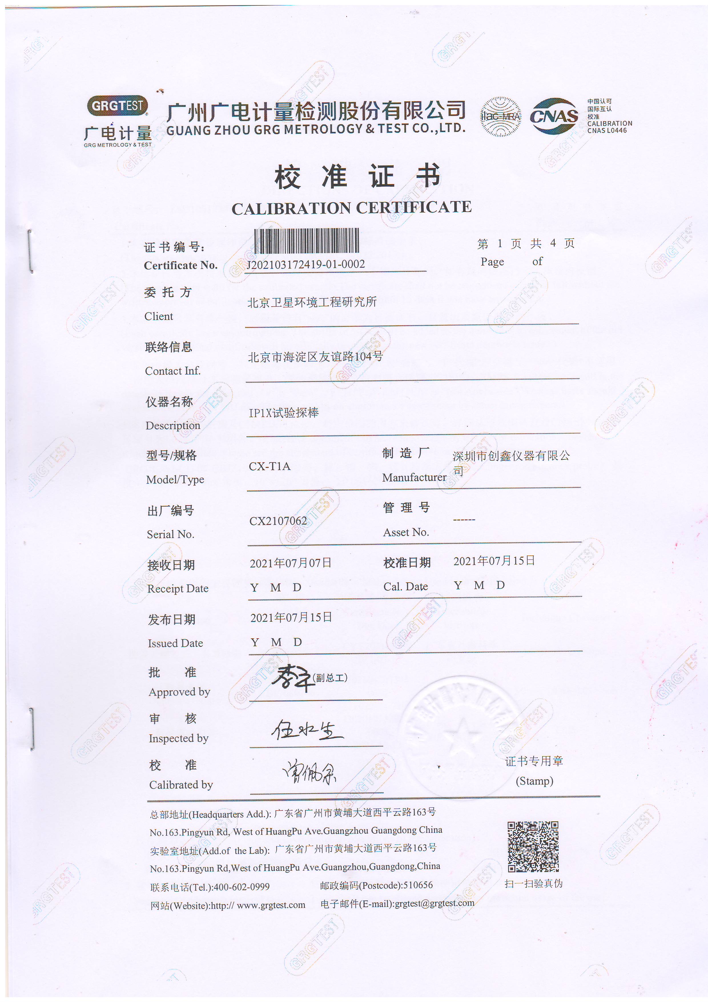 符合GB4706、GB2099、GB4943、GB4208IPX2、GB3883圖1、IEC61032圖2試具B、IEC950圖2A、IEC60884、IEC60335、GB/T16842試具B、UL507、EN60529圖1、UL1278圖8.4等標準要求。用于防止手指觸及或防觸電檢驗的防護檢驗。